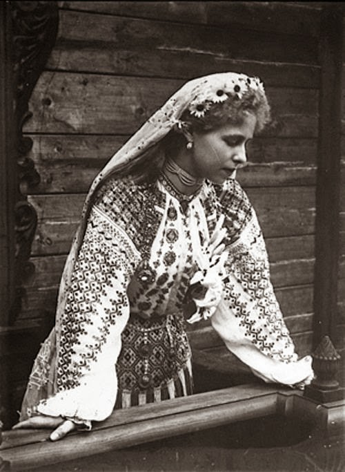 Regina Maria imbrăcată in costum popular din Muscel, fotografie preluată de pe artainromania.ro