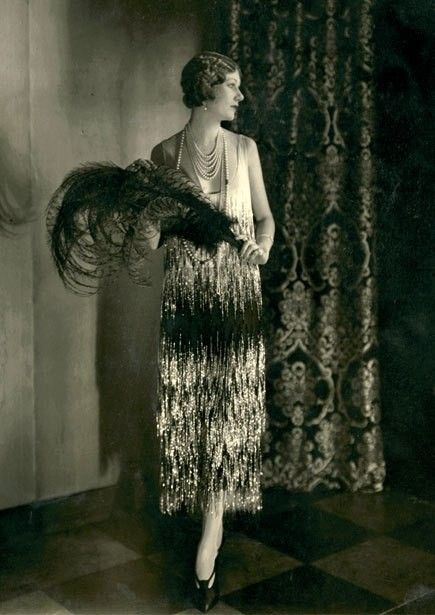 Toată silueta era gândită în mișcare și cu referințe geomerice. Pălăria mică, rotundă era trasă pe frunte peste părul scurt. Podoabele de seară erau determinate mai ales de dansul charleston pe muzica de jazz din primii ani de pace, în care tineretul se bucura frenetic de viață. Prin mișcările bruște, laterale ale piciorului, se arătau gambele senzațional dezgolite și, ca să nu sară din picioare, pantofii aveau barete. Pentru a sublinia mișcările dansului, pe poalele rochiilor se coseau volane, franjuri sau romburi de mărimea unei batiste, care fluturau și se balansau în ritmul muzicii, ca de altfel și mărgelele (sautoir) și cerceii foarte lungi.